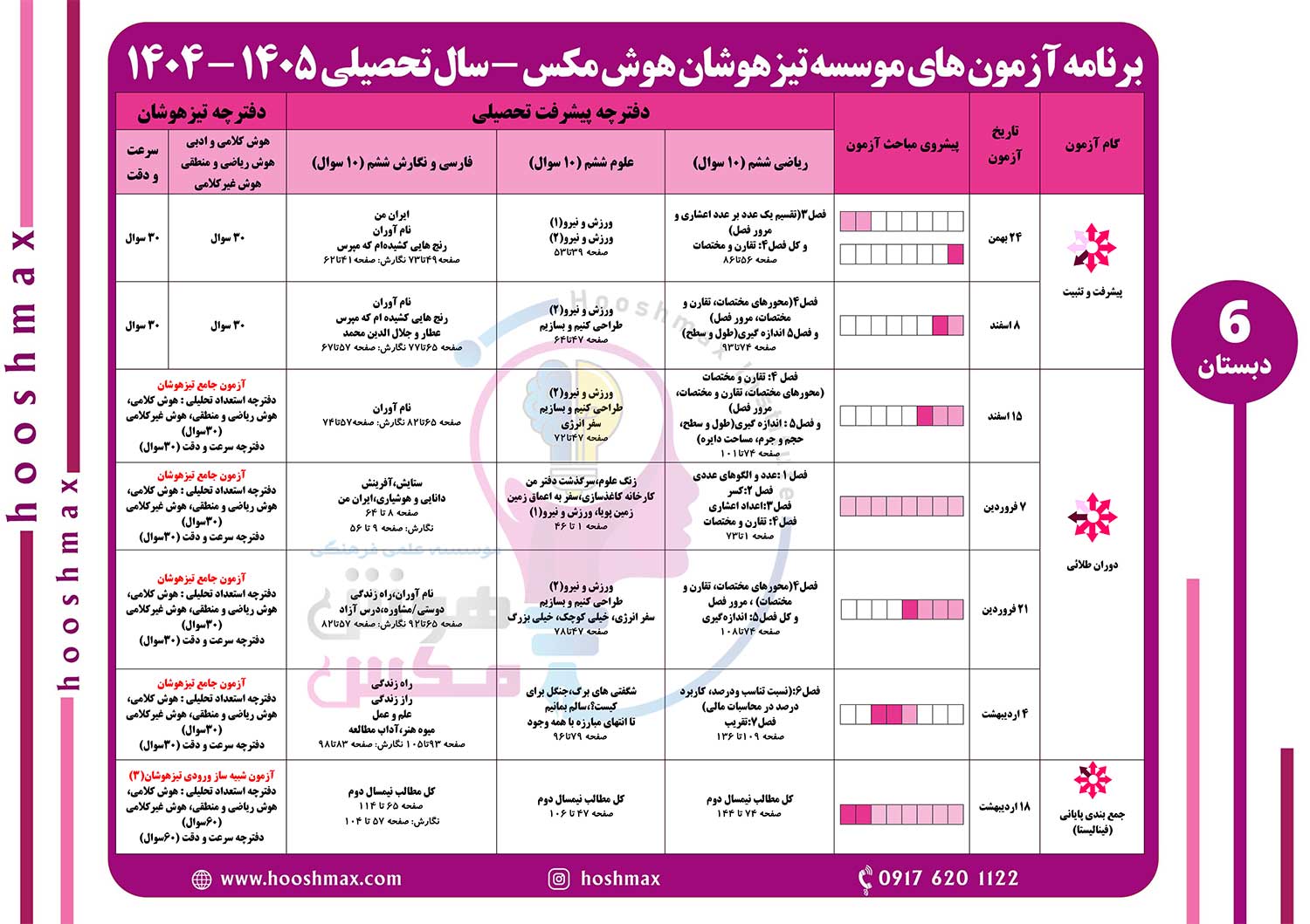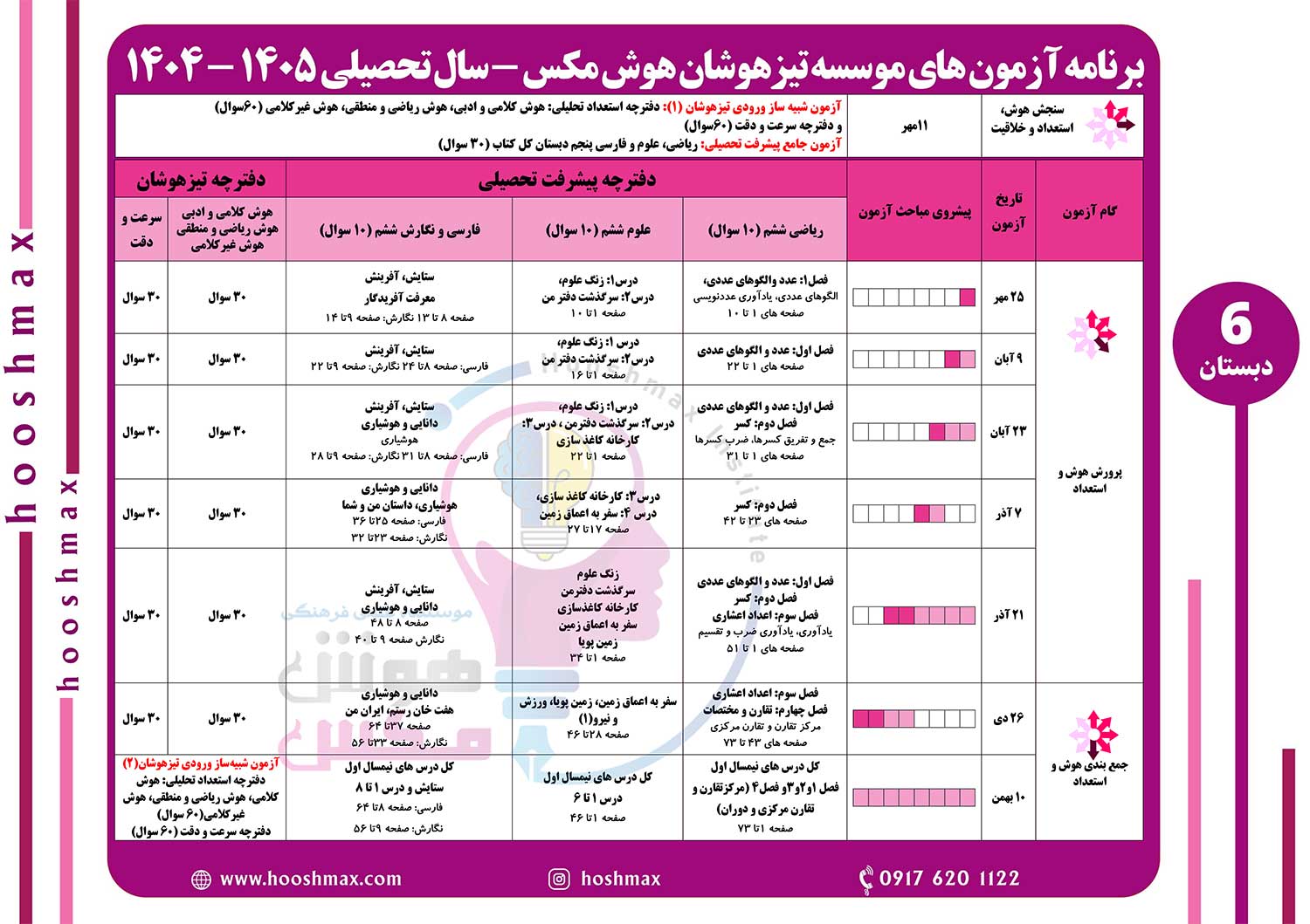 برنامه راهبردی پایه ششم موسسه هوش مکس