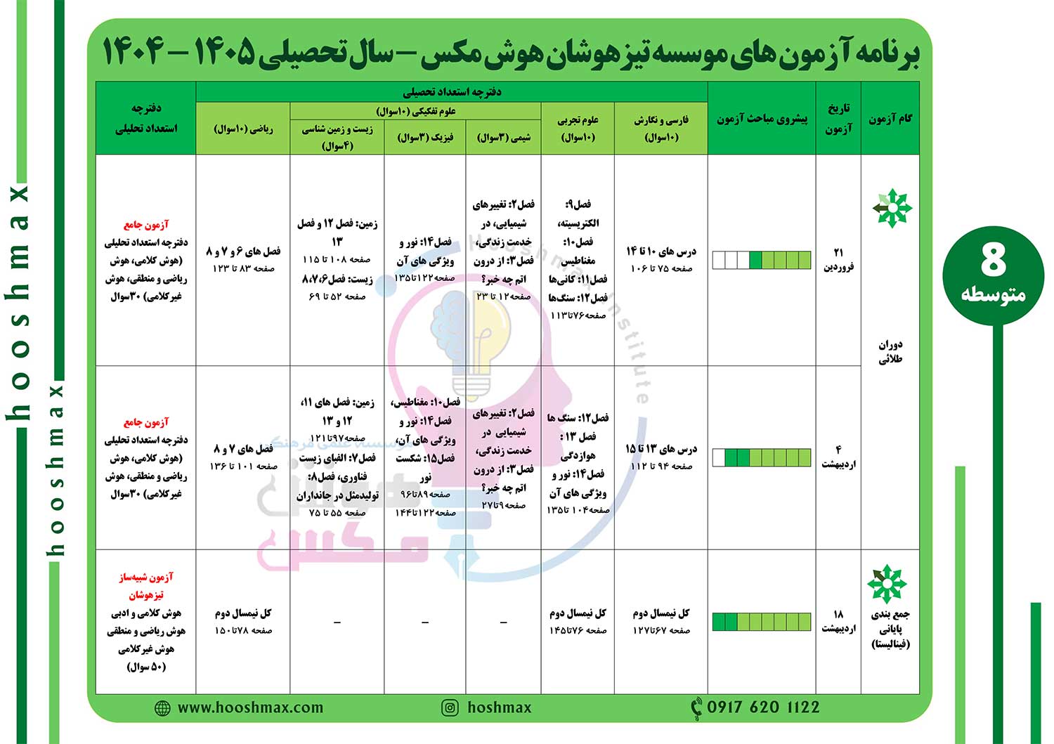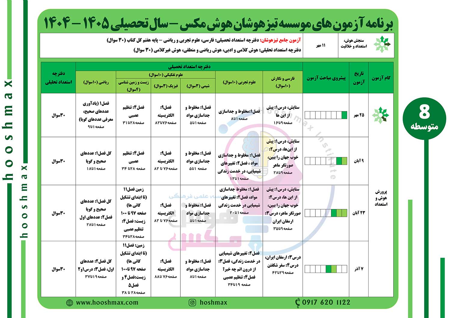 برنامه راهبردی پایه هشتم موسسه هوش مکس